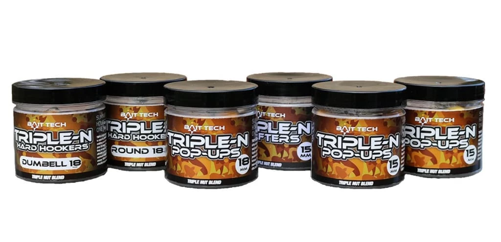 All the hook baits in the range include our successful triple nut base mix and liquid cream attractor. The attractor package ensures Triple-N Hookbaits are effective all year round.