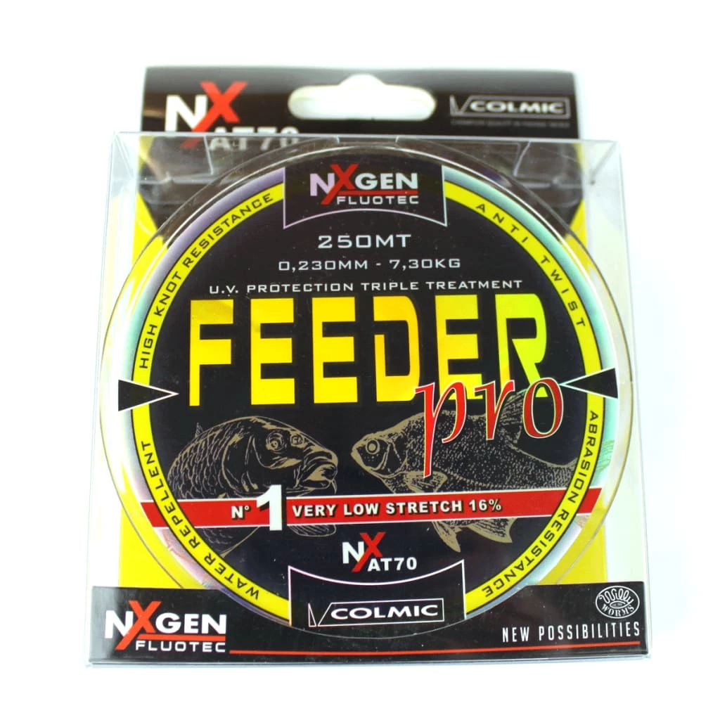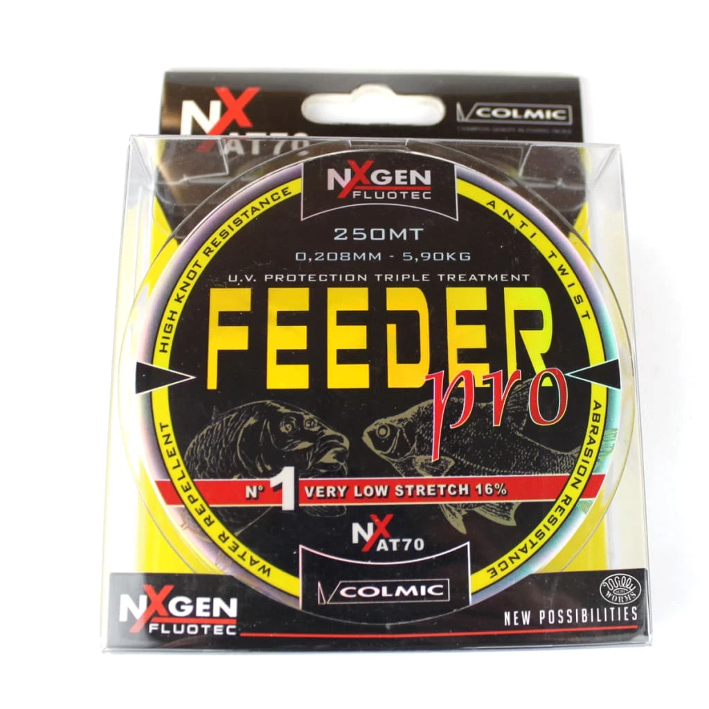 Feeder Pro is part of the NX Gen stable of high tech lines. Developed by Colmic as a crossover line it takes the exceptional suppleness of a top quality sinking nylon line whilst getting as close as possible to no stretch characteristics of a braid. The result is a superior quality feeder line with excellent abrasion resistance and a very low stretch (only 16%) for excellent bite detection.