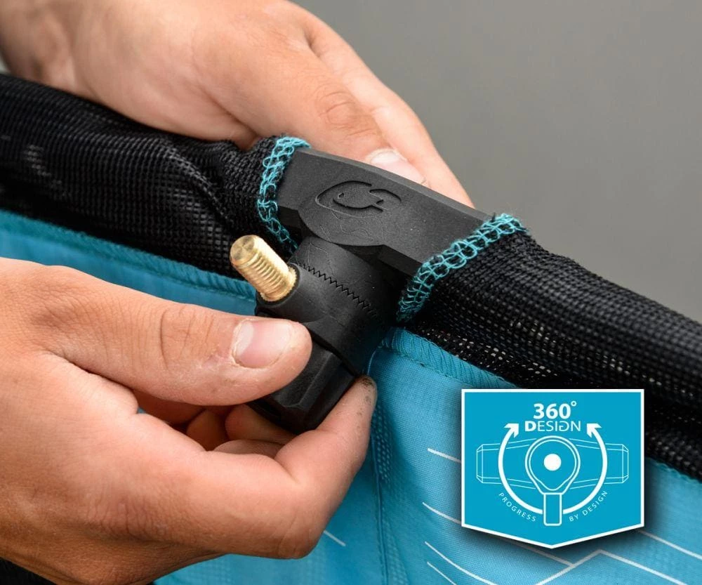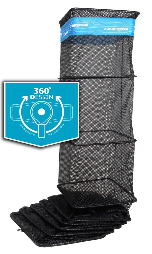 This keepnet is made of a durable, ultra-fine and carp friendly wide mesh. The unique and strong connection block features 2 screws. One in a horizontal direction, which can the turned 360 degrees. This gives the option to place the keepnet in any required position on your seat box leg. This makes placing multiple nets in a reachable position easy. The second screw is placed in a vertical direction for use on a bank stick or toolbar. The square, sturdy rings make sure the net stays nicely spread on the bottom. The first, last and second last ring feature an increased tube diameter. The inside has been fitted with 2 lifting handles for a fish friendly release. The 2 plastic rings at the bottom offer the possibility to add a weight or rope.