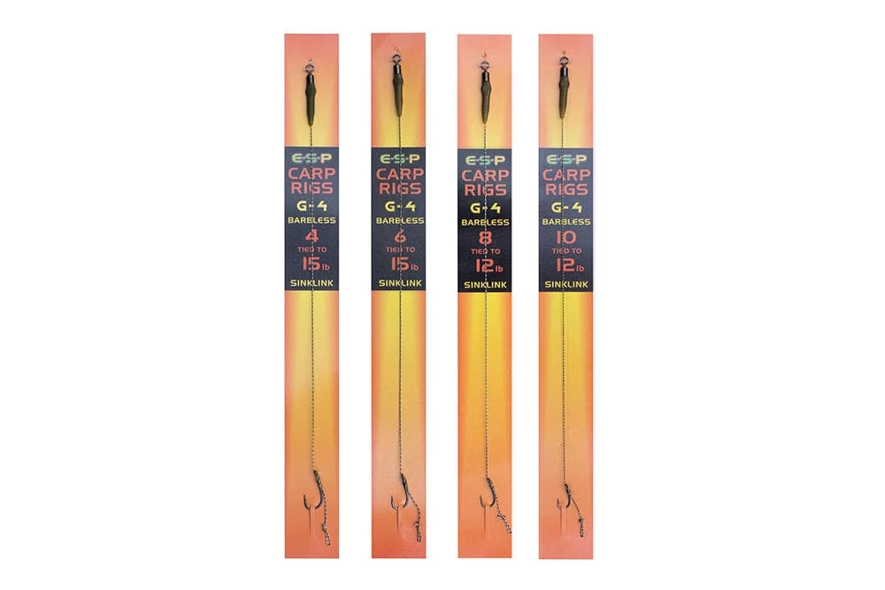 These ready tied rigs are available in barbed and barbless in sizes 4, 6, 8 & 10. They are tied to 9″ (23cm) of Camo Sink Link, a Dyneema based braid which is smooth, strong and really sinks.