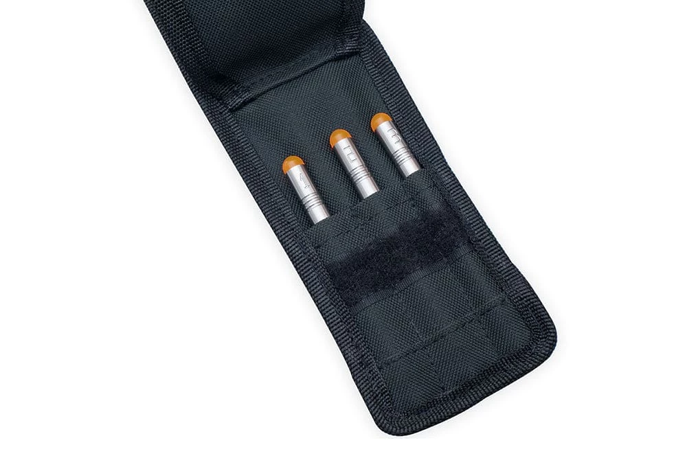 A set of two stainless steel wrap sticks and three spot markers neatly packaged in a heavy-duty fabric sleeve.