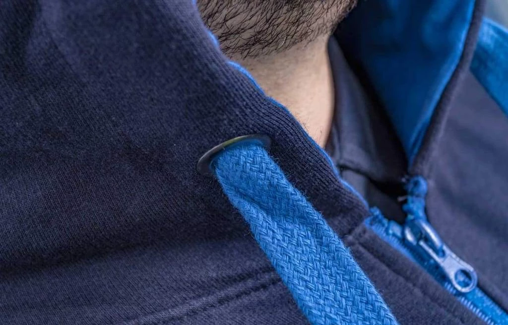 We’ve used elasticated waist and cuffs on the Navy Zip Front Hoodie for improved comfort and protection.