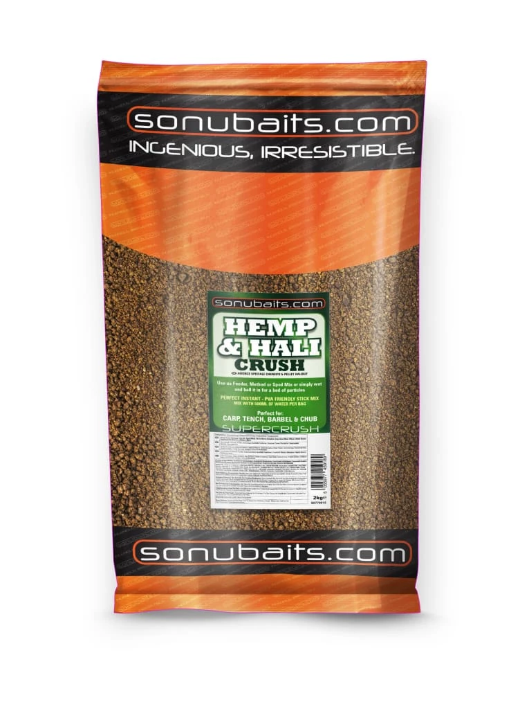 Hemp & Hali Crush is made using 95% Hemp and Halibut pellets crushed together. We have kept large particles of bait in the mix to provide a high food content for the fish and with the smaller particles creating the feeding zone and the larger particles to keep the fish grubbing around for the food content the fish stay in the feeding area for longer.