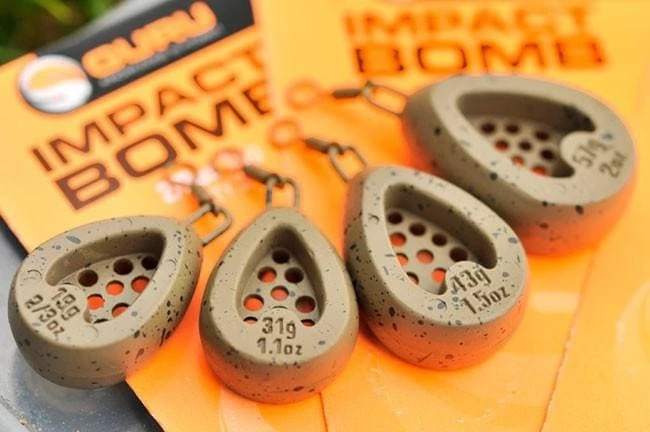 The Impact Bomb is a flat pear shaped lead with a hole in the middle of it and a mesh which bait can be pushed into, so that it will stay in during the cast, with METHOD FEEDER CLIP the majority of it ending up close to your hookbait.