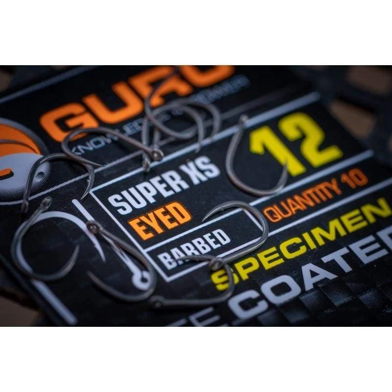 Based originally on our popular XS Spade, which has become a lethal big fish hook for straight hooking baits! Adding this eyed version in both barbed and barbless to the family has created a super strong wide gape pattern, that is perfect for hair rigging or banding baits on commercial (barbless) and natural (barbed) venues for big fish! PTFE Coated for ultimate strength, sharpness and durability. The extra wide gape means you get the ultimate hook hold, while the long point makes it very difficult for fish to avoid getting hooked when hair rigging or banding. The ultimate eyed specimen pattern, with sizes from an 8 to 20 covering all situations. Whether its hair rigging a chunk of meat for barbel, banding a 6mm pellet for chub, or for general hair rigging commercial needs with big fish in mind, this pattern has it covered!