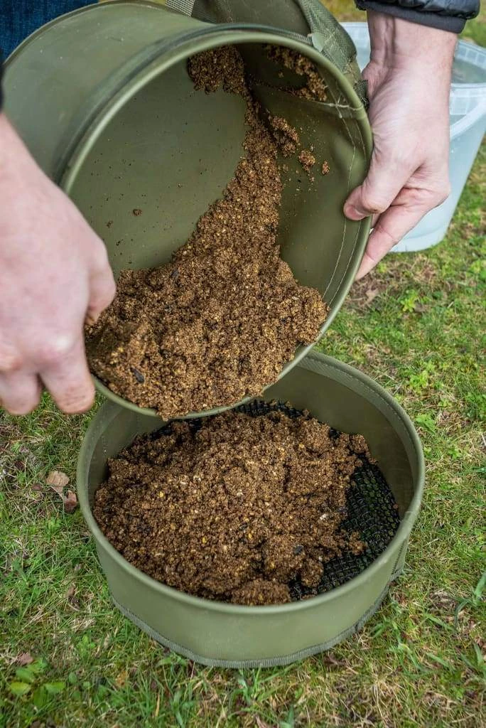 This compact groundbait bowl set includes a rubber mesh riddle, sized perfectly for use with big fish groundbaits and natural baits. Includes carry handle.