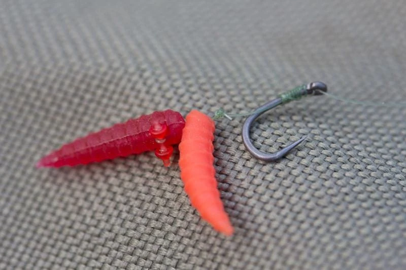 Korum Natural and Fluoro maggots, with ‘two textures’ in each pack. Half the maggots are a softer rubber construction for hooking directly, whilst the other half are firmer, for hair-rigging or using in a mag-aligner setup. You get two colours per packet, which are available in Natural and Fluoro colours, to suit different venues and water clarities.