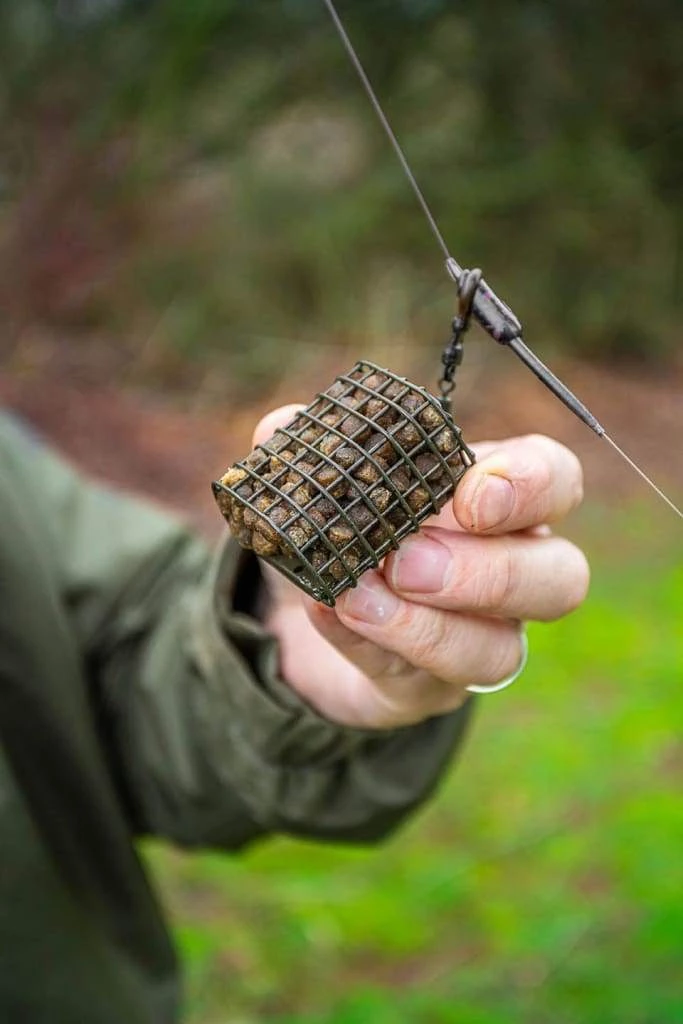 Made from a super strong, durable metal mesh frame. Hydrodynamic design for use in flowing water, it’s low profile grips the riverbed better than standard feeders. The closed rear design enables the use of larger particle baits in deeper water, offering a slower release. Camo finish for ultimate camouflage.
