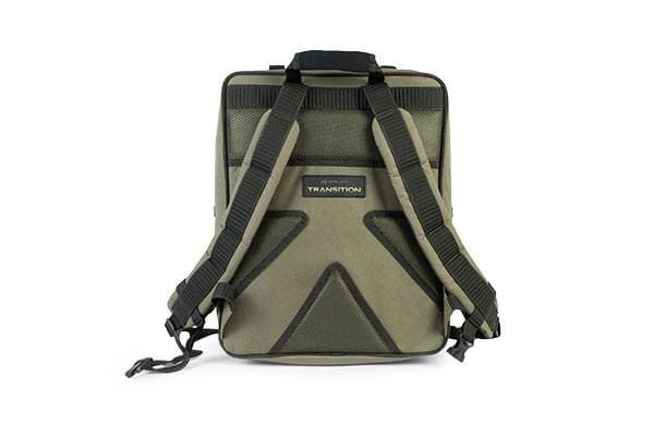 There are two velcro loops on the top of the bag to house things like folding nets and banksticks, D loops designed for carabiner attachments, plus our new Transition holster, which works in conjunction with all new Transition unhooking mats.
