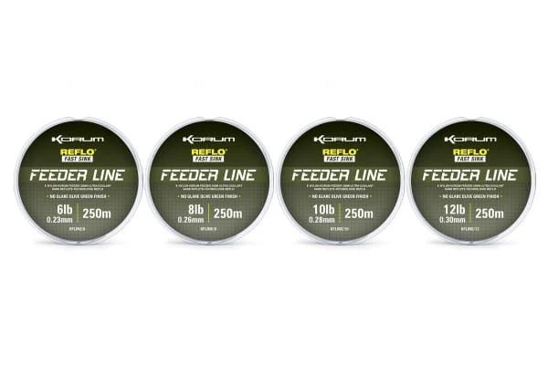 Korum Feeder Line is our first ever reel line designed specifically, for modern feeder fishing techniques. It s super-fast sinking as it has a specific gravity rate much denser than water, unlike many other lines. It s superior knot strength, round profile and smooth olive green finish make it absolutely perfect for the rigours of modern feeder fishing. Supplied on 250m Spools. Available in four breaking strains – 6lb, 8lb, 10lb and 12lb.