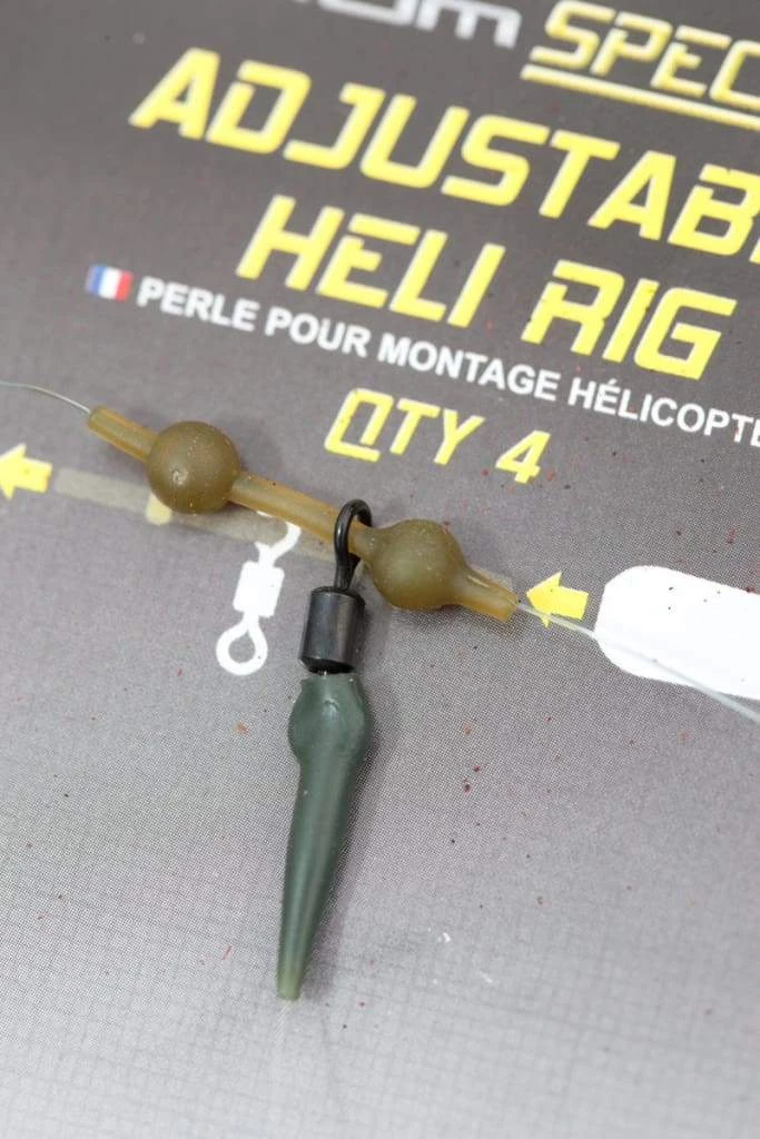 Purpose designed Helicopter setup that can be threaded directly to your main line for an anti-tangle rig. Designed so the line is always protected when playing specimen fish. Can be adjusted on the main line easily. Top bead is semi-fixed for a safe semi-fixed setup.