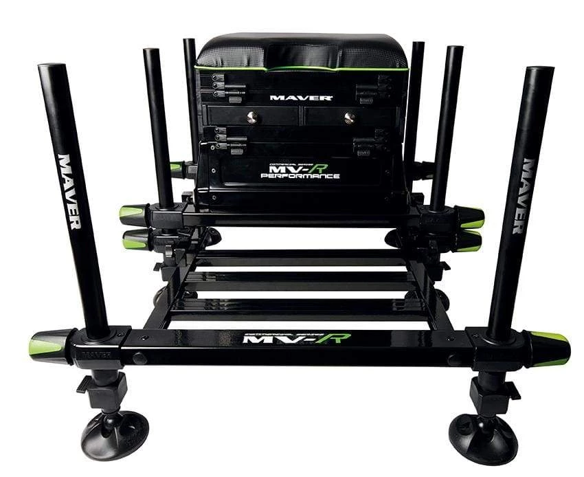 The new MV-R Performance with its modern base unit immediately gives the impression of a true matchman’s seat box. The upgraded pole seat, spirit level for comfortable positioning and the added facility to take Maver’s optional wheel kit means this competitively priced modular box now holds appeal for a far broader range of anglers. The addition of six telescopic anodised legs (two of which carry the Maver logo) combined with the folding industrial strength, anti-slip footplate and lock & slide hinge system makes the MV-R Performance suitable for a huge number of today’s anglers.