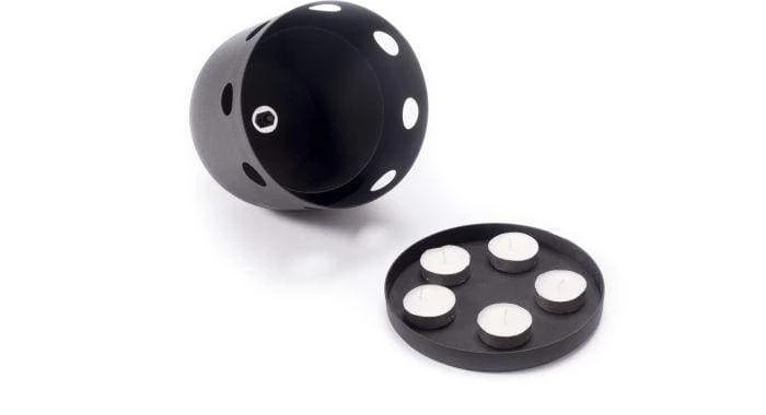 Using nothing other than 5 tea lights inside the central chamber testing has shown temperatures raised by as much as ten degrees Centigrade, yet the matte black coated steel Heater eliminates the dangers of gas bottles or fuel burning products as space heaters.