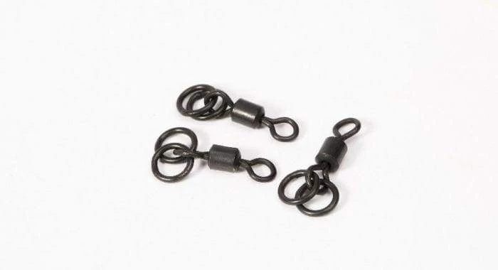 High strength zero glare double ring swivels, designed for safe drop off in-line lead end tackles in weed or close to snags. Tie the hooklink to one ring, splicing the leader or knotting the main line to the other ring. 8 per pack.