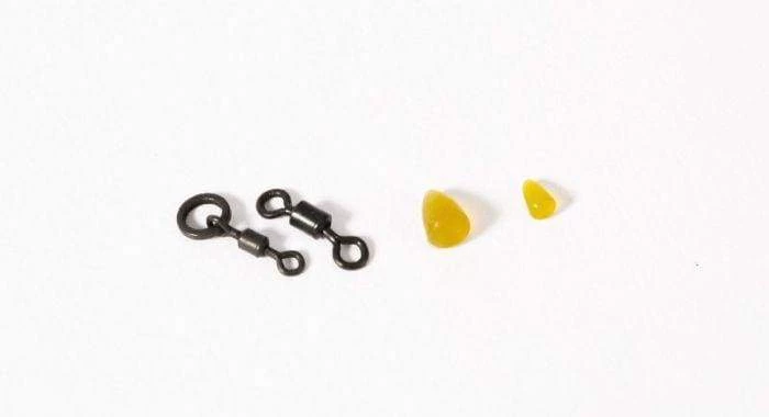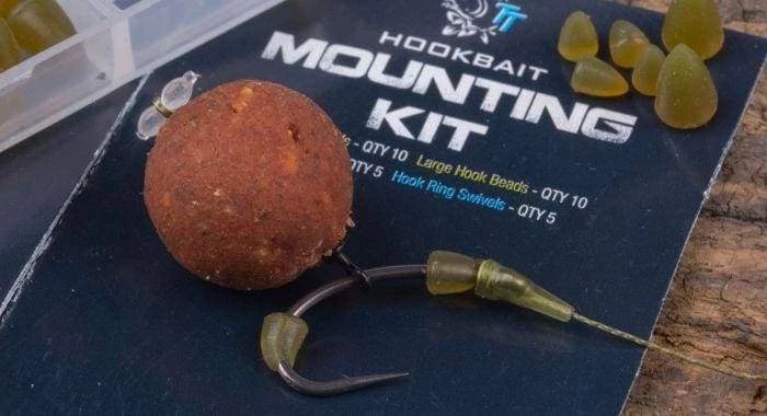 The Hookbait Mounting Kit includes both large and small Diffusion Camouflage Hook Beads plus Hook Swivels and Hook Ring Swivels for sliding hairs, improved anti-eject properties and creating aggressive fast turning rigs.