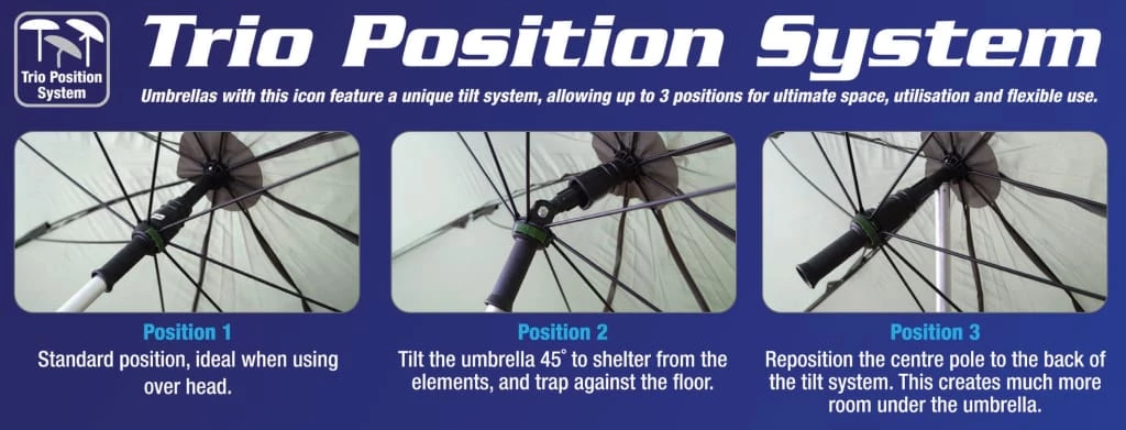 - The Nylon Umbrella features the double tilt system and dual centre pole position for maximum space options.