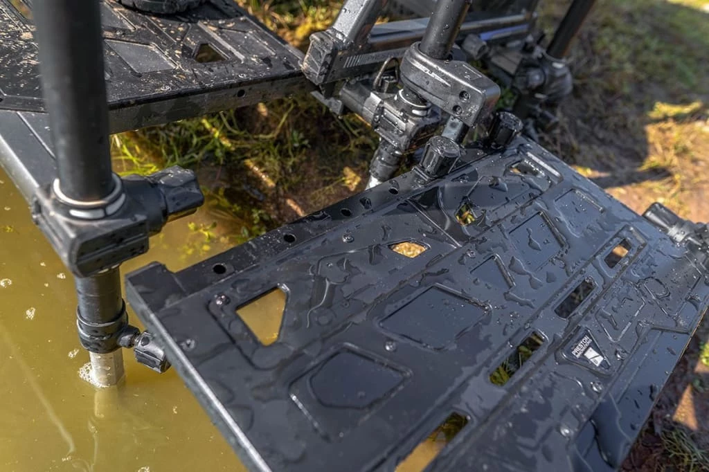 | The Offbox Side Foot Rest is a must have item for anglers who enjoy fishing in the margins. With its super strong move able knuckle, you can position the rest exactly where you need it and on either side of the seat box. Once the rest is in position, it allows you to rotate around on your seat box and rest your feet at the correct position and height to face down the margins, making it far easier to fish. The two 36mm legs supplied can be extended to the correct height and also used for housing additional Offbox accessories if required. |