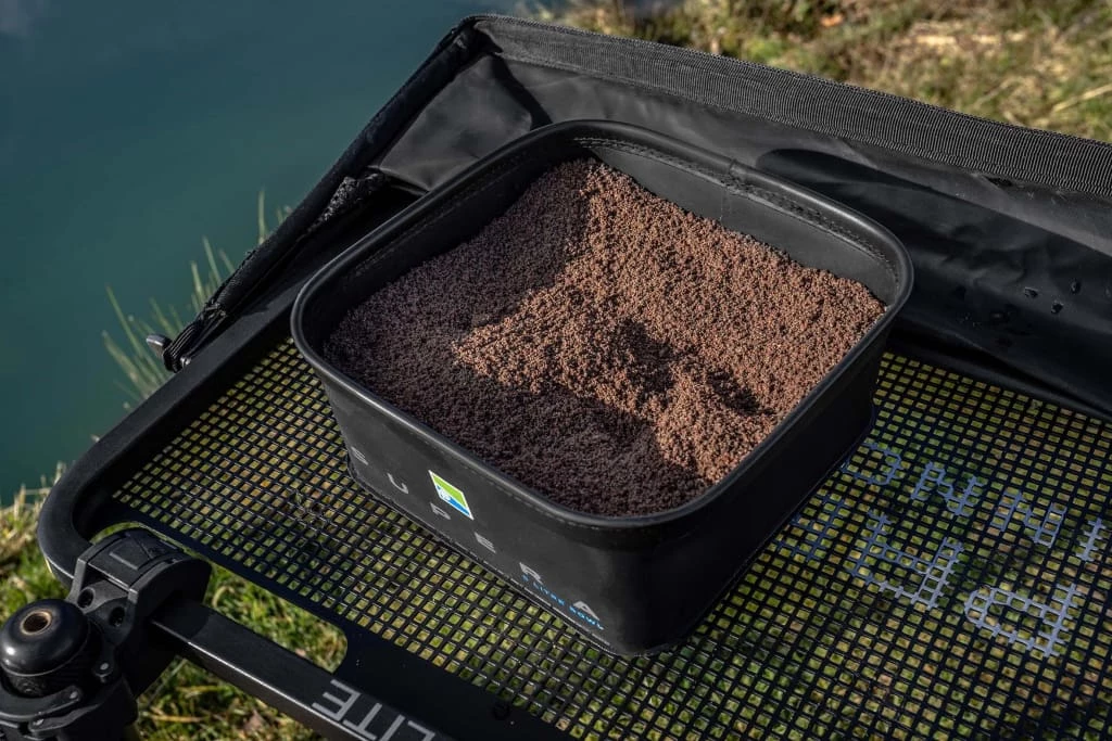 A really handy sized bowl for groundbait or larger quantities of loosefeed, significantly larger than a bait box but compact enough to easily fit on a side tray.