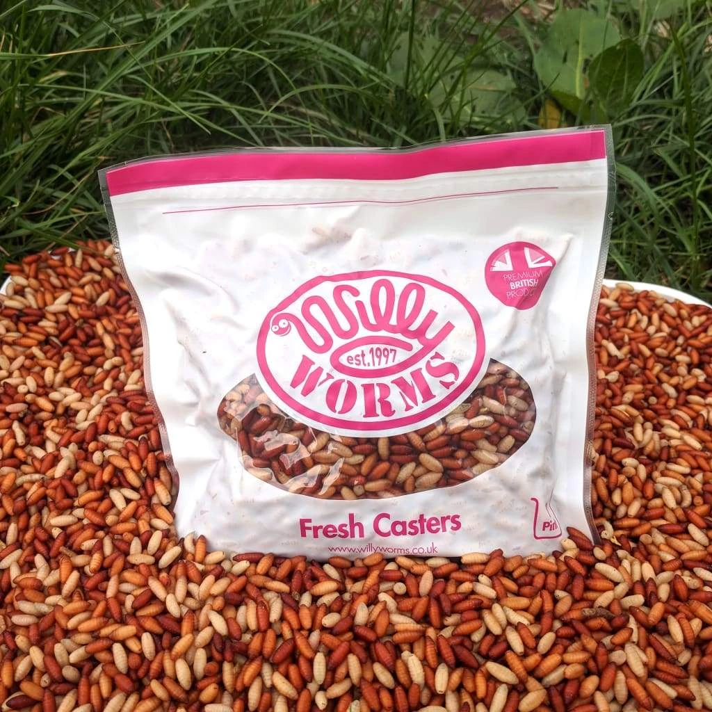Casters are a great bait for the winter months on natural venues like Rivers and Canals. During the spring and summer months they are a great bait for Carp on commercials. Mix into groundbait with other live bait to make a great spod mix. Or band onto a hair rig.
